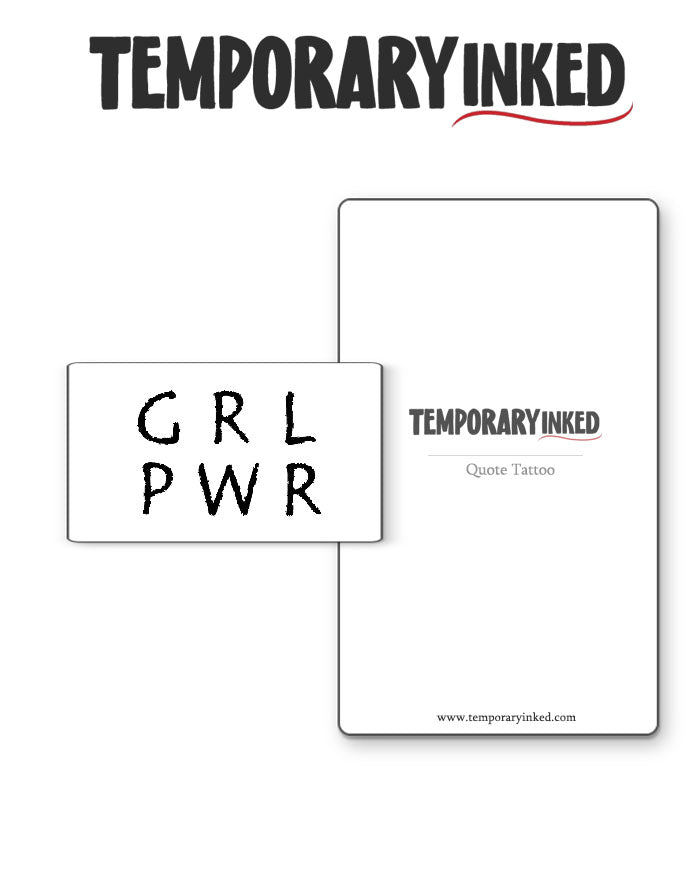 Get your GRL PWR Semi-Permanent Quote Tattoo! on with this fun and fierce tattoo! Embrace the power of being a badass girl with GRL PWR! tattoo!