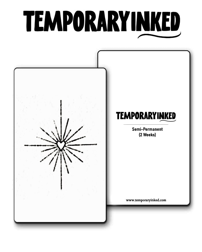 Duration: Our Semi-Permanent Tattoos are designed to last up to 2 weeks, depending on the application area, daily activities, and skin moisture & aftercare.