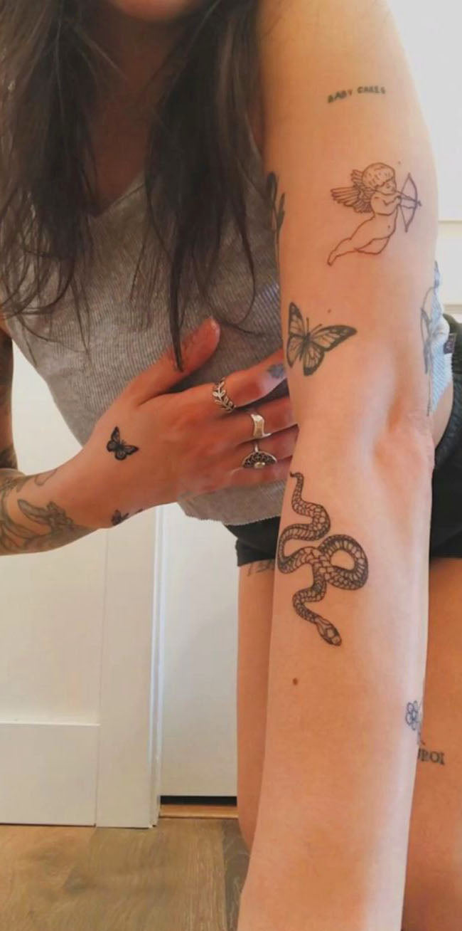 "I had a summer vacation coming up, tried these temporaryinked tattoos and went swimming with friends! These look so amazing it lasted so long & looked so realistic! These butterflies and the other minimal tattoos I have look so good T_T