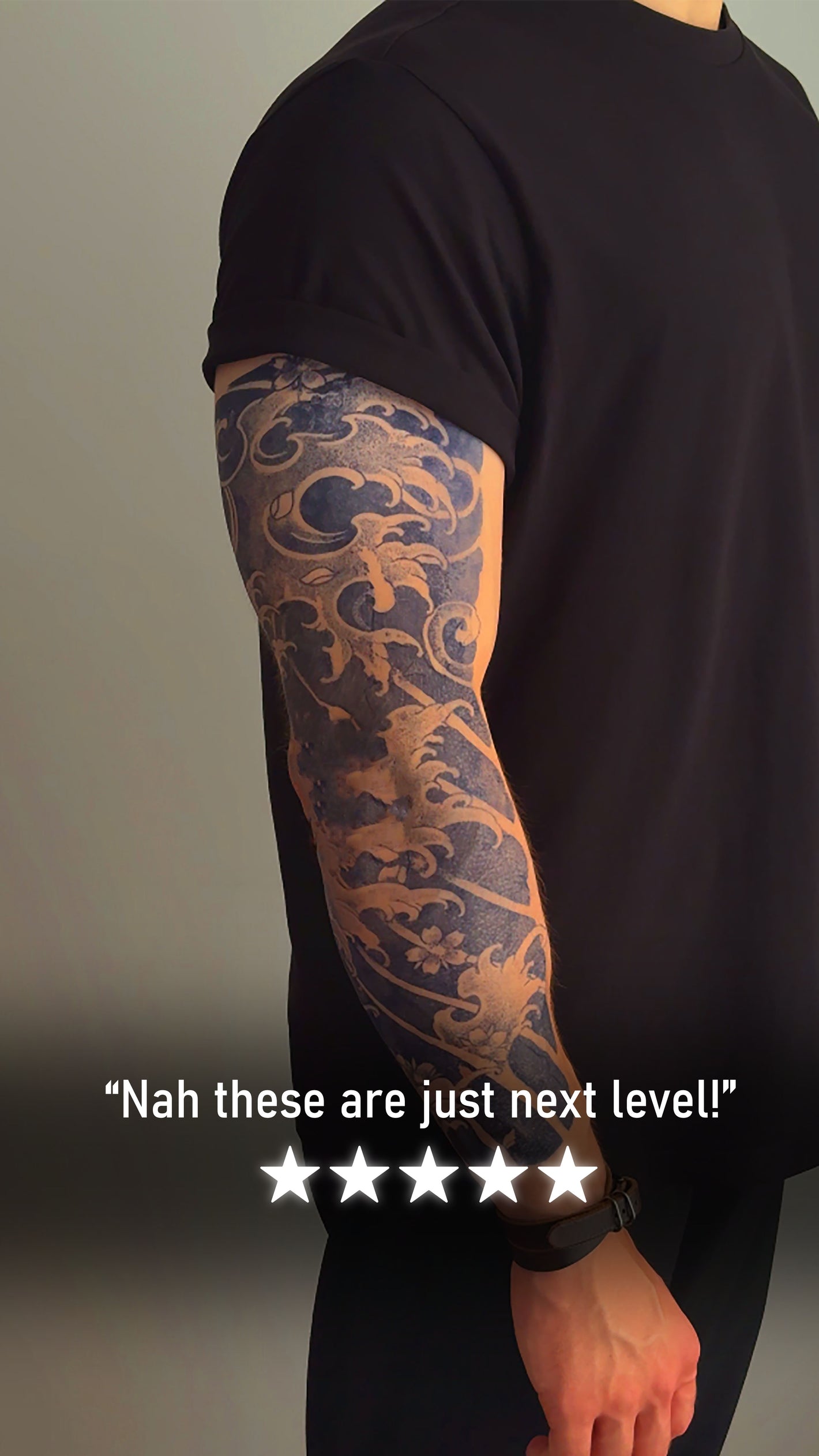 "These full sleeves are a game changer... I finally see how a full sleeve tattoo would look with my style and these temporaryinked tattoos are just next level! I ended up buying almost all your sleeves and it'll be rotation for a while until I find my favorite style. I felt so good, literally felt so cool with sleeves... I love this brand so much! Lovely packaging, lovely support team! "