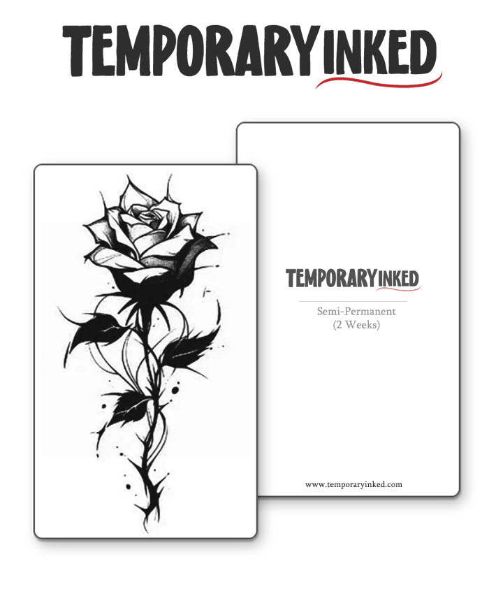 TemporaryInked™ Tattoos are realistic 2-week tattoos that sit on your skin, gradually developing darker over 3–5 days.