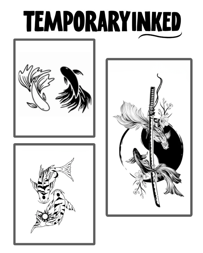 Two Koi Fish Balance Tattoo – 2 x 4 in (5 x 10 cm))