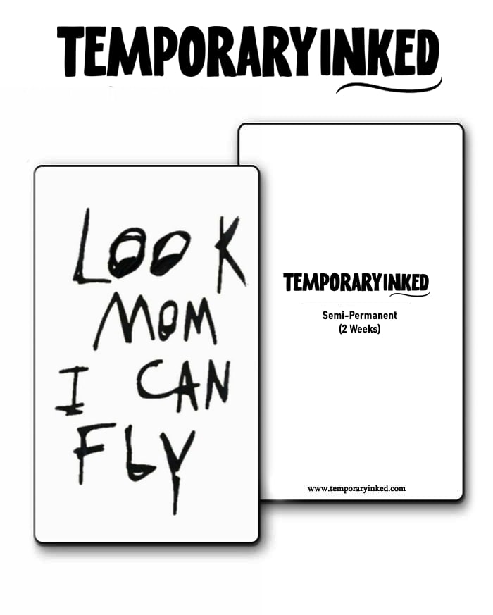 TemporaryInked™ Tattoos are realistic 2-week tattoos that sit on your skin, gradually developing darker over 3–5 days.
