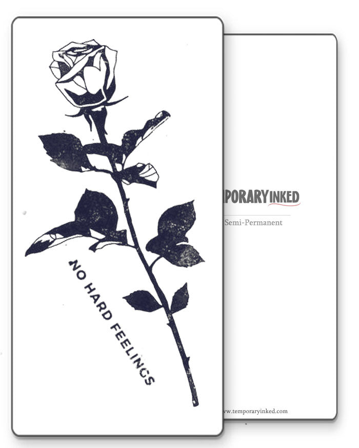 Channel resilience and closure with the 'No Hard Feelings Rose Tattoo,' a bold design that pairs the stark beauty of a rose with a fierce declaration of overcoming and letting go.