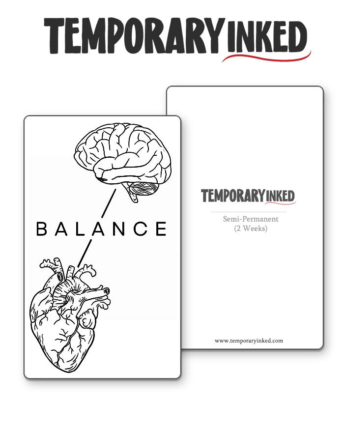 Balance Tattoo: A thought-provoking design featuring a brain and heart connected by a line, emphasizing the harmony between intellect and emotion; this tattoo symbolizes the importance of finding equilibrium in decision-making and life choices.