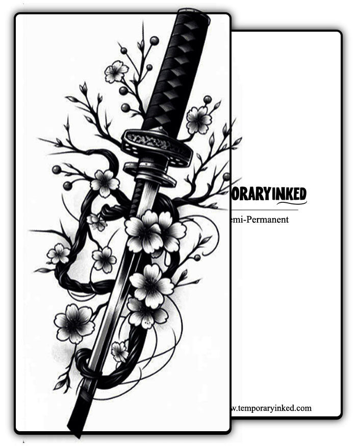 Sakura Steel Forearm Tattoo weaves together the ethereal beauty of blooming cherry blossoms with the mystical power of a katana, creating a spellbinding symbol of harmony between nature’s grace and the warrior’s unyielding spirit.